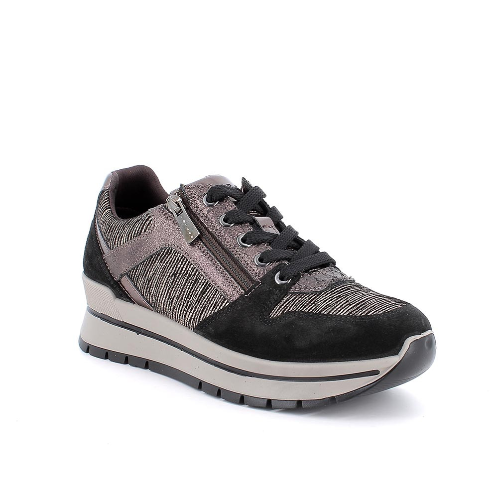 Городской пыл и первоклассный комфорт: эти кроссовки современного дизайна покорят вас своими смелыми деталями и элегантным силуэтом. Боковая молния делает их очень практичными, а шнуровка спереди обеспечивает индивидуальную посадку. Высокая подошва придает элегантный вид, не жертвуя устойчивостью, идеально подходит для того, чтобы сопровождать вас в стиле с утра до вечера. Выигрышное сочетание функциональности и характера!