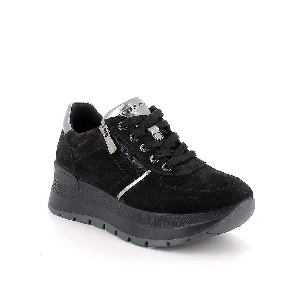 Женские кроссовки на танкетке с молнией, черный