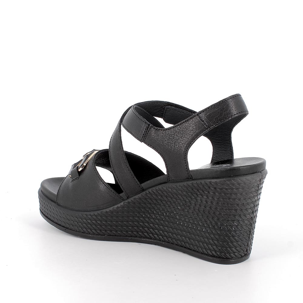 ЖЕНСКИЕ КОЖАНЫЕ САНДАЛИИ НА ТАНКЕТКЕ, ЧЕРНЫЙ