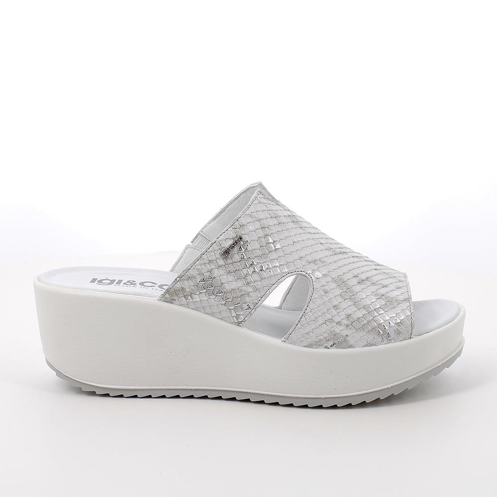 ЖЕНСКИЕ КОЖАНЫЕ САНДАЛИИ НА ТАНКЕТКЕ, СЕРЕБРЯНЫЙ